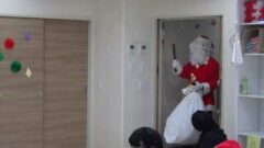 施設長からの挨拶のあと、学習室にサンタさんがやってきました。