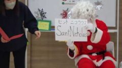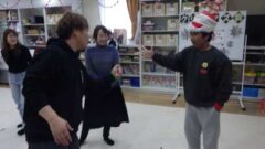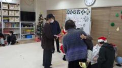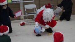 学童さんからの質問に答えた後、クリスマスプレゼントをみんなに配ってくれました。
